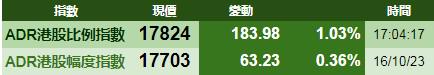 智通财经APP获悉,周一美股三大指数集体收涨,港股ADR指数上涨,按比例计算,收报17824点,较香港收市涨183.98点或1.03%。