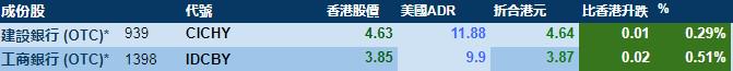 大型蓝筹股多数上涨,汇丰控股收报62.68港元,较港收市涨1.42%;控股收报306.13港元,较港收市涨1.64%。